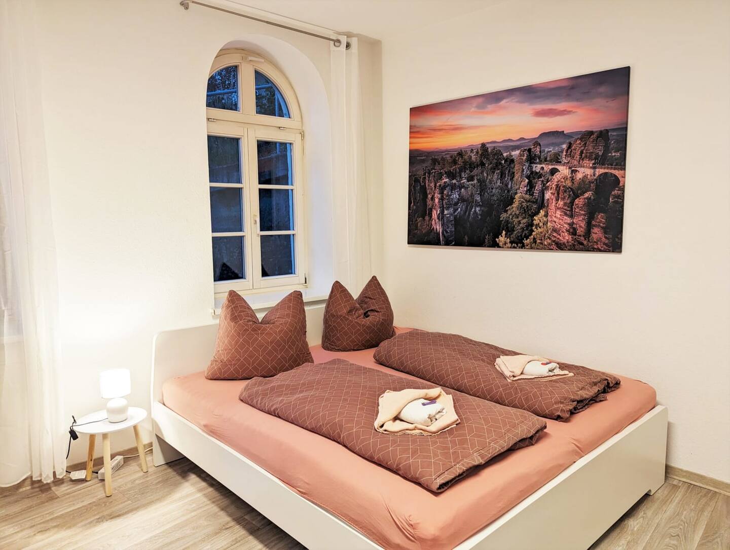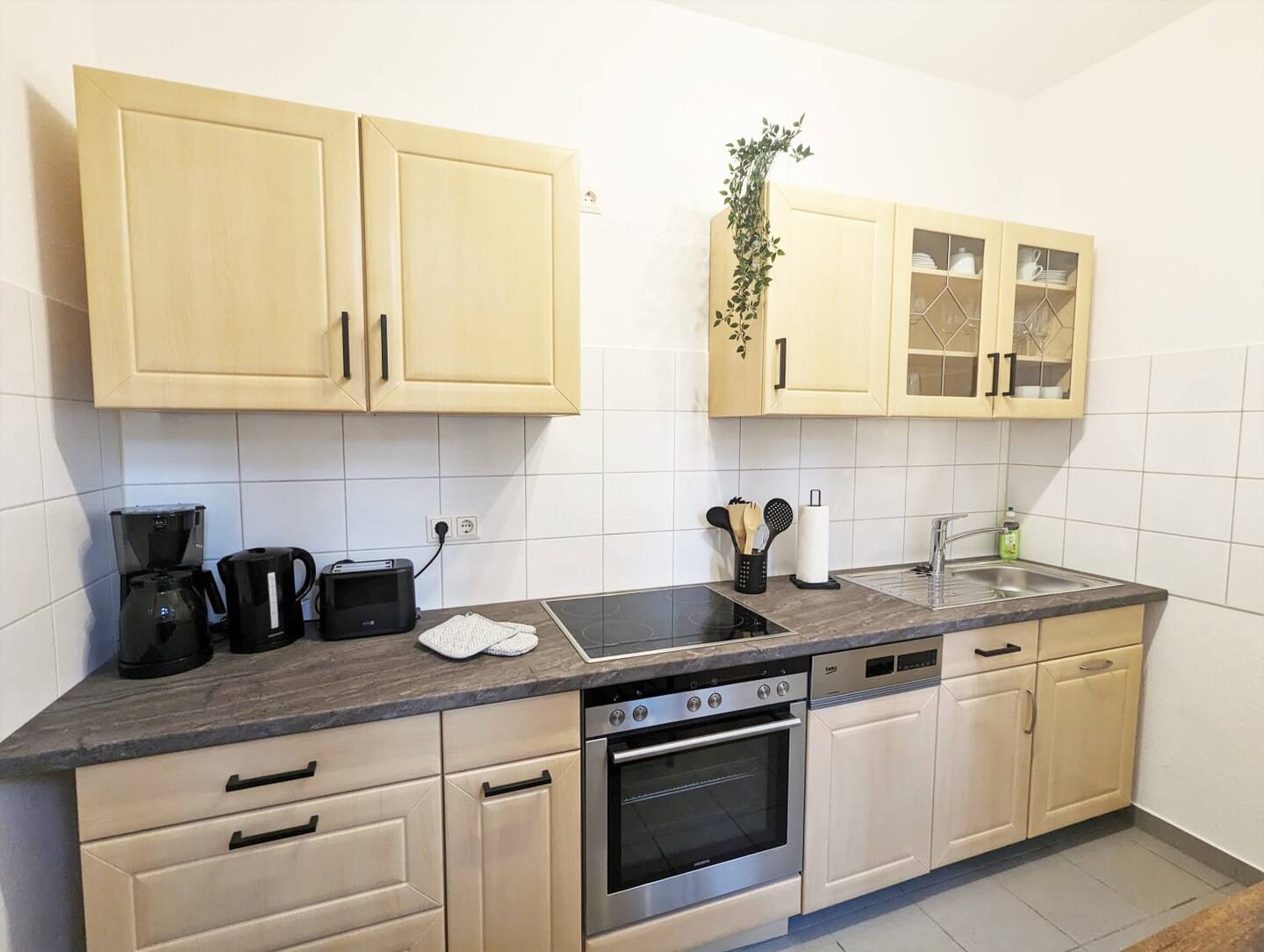 Deine Unterkunft Die Wohnung hat ein großes Bett und ein Schlafsofa, sodass bequem 4 Leute Platz finden. Eine voll ausgestattete Küche und eine Essecke laden zum Kochen ein.