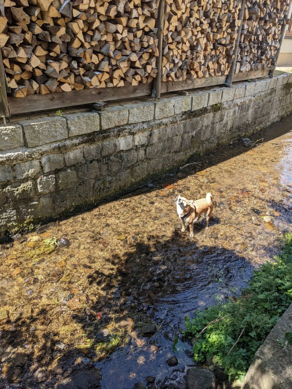 Der Garten mit Pool und Sitz- und Grillmöglichkeiten liegt malerisch neben dem durch das Grundstück plätschernden, kleinen Flüsschen, indem man sich auch die Füße abkühlen kann.