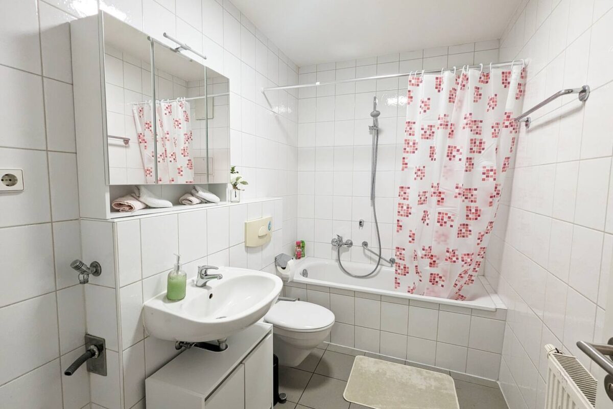 Eure Wohnung habt ihr für euch ganz alleine. Im Haus gegenüber steht euch der Garten mitsamt verschiedener Sitzgelegenheiten, dem Pool und Liegen (Sommer) und der Fasssauna zur Verfügung. Um dorthin zu gelangen müsst ihr nur einmal die Straße überqueren und könnt dann die breite Treppe hinter dem Parkplatz in den Garten nehmen. Im Haus gegenüber könnt ihr auch den Wäscheraum benutzen.