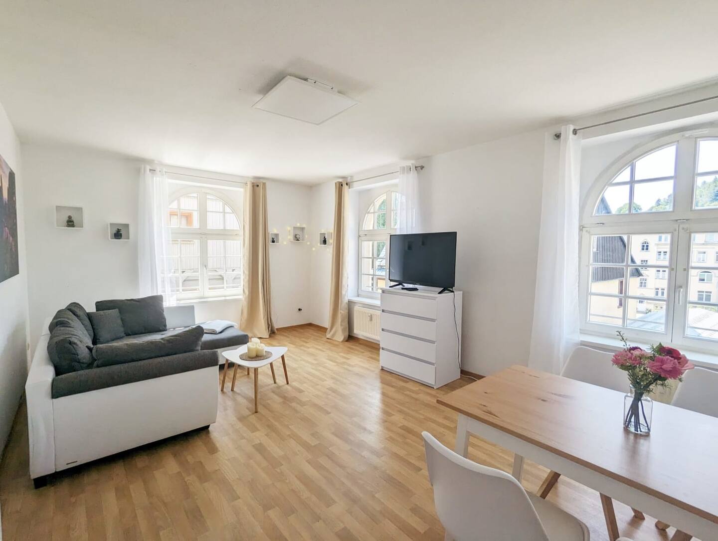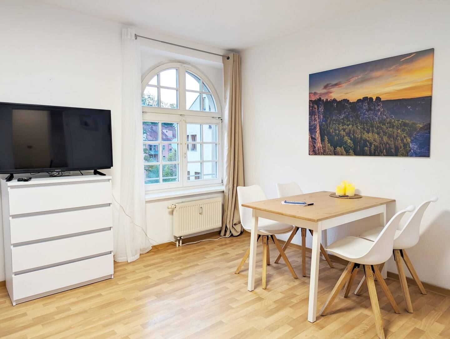 Für den Winter ist die Wohnung ebenfalls super gelegen, da man in nur 10 Minuten an der Piste ist, mit den Langlaufskiern praktisch direkt starten kann und auch zum Rodeln immer etwas findet. Das Kräuter-Vital-Bad in Sebnitz ist fußläufig erreichbar und lädt mit einer tollen Saunalandschaft oder seinem Freibad im Winter wie im Sommer zum Relaxen ein.