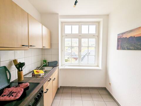 Für den Winter ist die Wohnung ebenfalls super gelegen, da man in nur 10 Minuten an der Piste ist, mit den Langlaufskiern praktisch direkt starten kann und auch zum Rodeln immer etwas findet. Das Kräuter-Vital-Bad in Sebnitz ist fußläufig erreichbar und lädt mit einer tollen Saunalandschaft oder seinem Freibad im Winter wie im Sommer zum Relaxen ein.