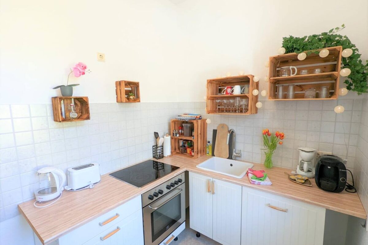 Deine Unterkunft Die Wohnung ist sehr gemütlich eingerichtet und mit allem ausgestattet, was man für einen langen und tollen Urlaub braucht. Im Badezimmer könnt ihr u.a. eure Wäsche waschen und in eurer Küche leckere Gerichte zaubern. Im Wohnzimmer könnt ihr den Abend bei einem Glas Wein oder einem lustigen Spieleabend ausklingen lassen – in gemütlichem und romantischem Ambiente. Ein Fernseher ist da und somit könnt ihr nach einer langen Wanderung die Füße hochgelegt werden.